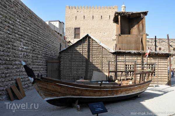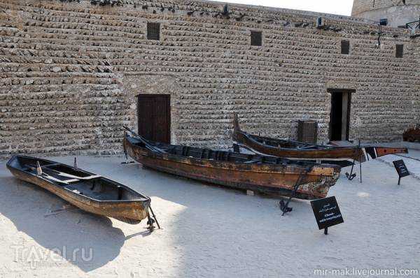 In the courtyard of the fort-museum, various examples of traditional Arab fishing boats are on display.