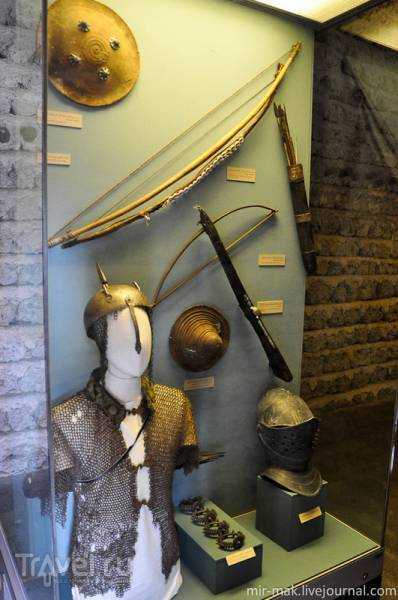 Next to each exhibit there is a sign with its description in two languages.