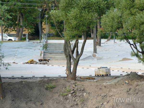 Since April, another structure has been added to the Pskova embankment. Since it's still under construction, it's likely a new observation deck.
