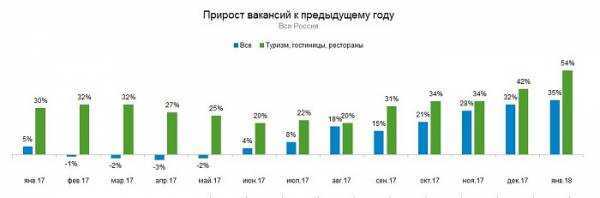 Según el portal Superjob informa que el número de vacantes en el sector turístico de Moscú ha aumentado en 271 puestos de trabajo en comparación con el mismo período de 2017. El segmento HoReCa ha crecido en 221 puestos. En San Petersburgo, el número de vacantes en turismo ha aumentado en 181 puestos, y en HoReCa, en 241.