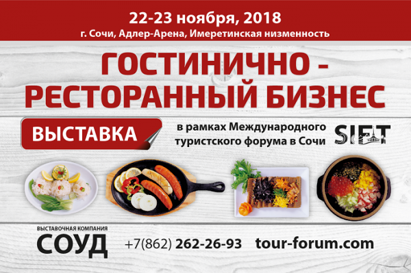 Los días 22 y 23 de noviembre se celebrará la XIX Exposición Internacional Especializada “Hotel and Restaurant Business 2018” en el marco del Foro Internacional de Turismo SIFT.