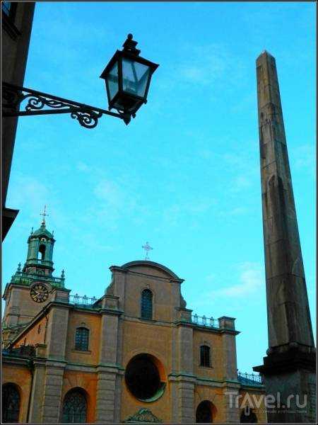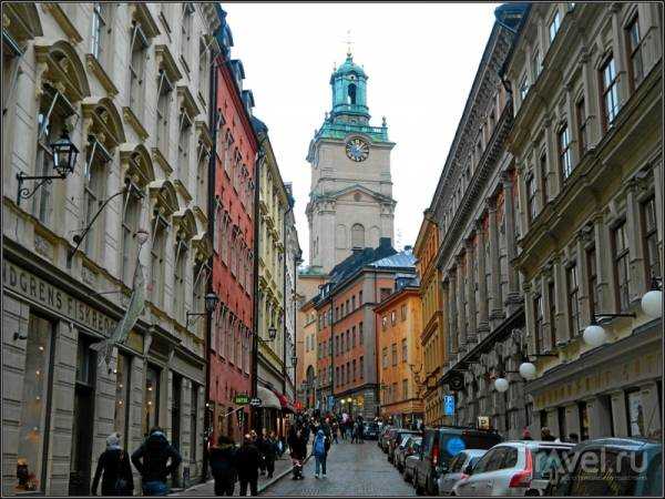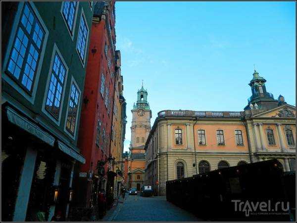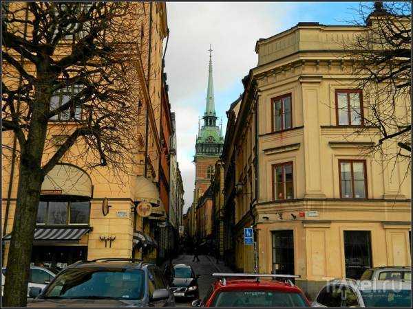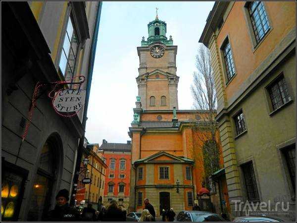 Vista del campanario de la catedral desde la calle Storkyrkobrinken.