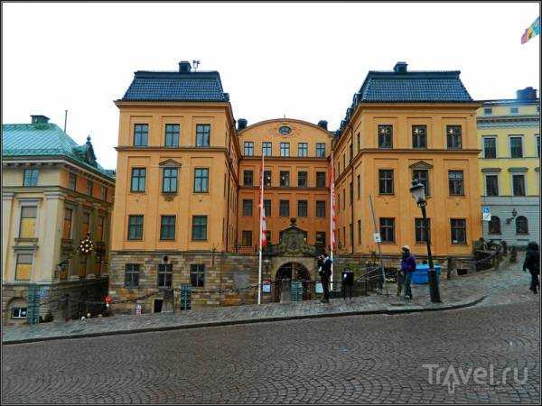 A la derecha se encuentra la antigua Bolsa de Estocolmo, hoy Museo Nobel.
