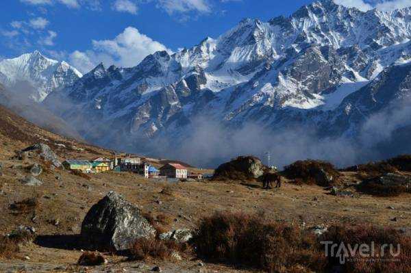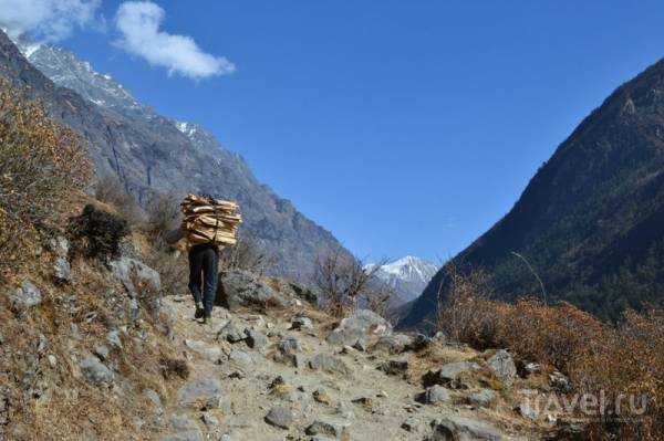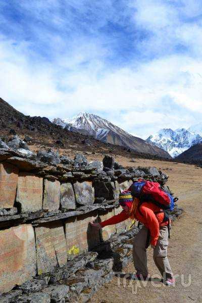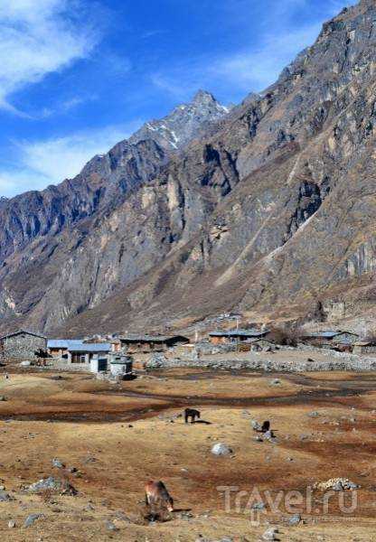 Tras ascender finalmente unos 500 metros, nos encontramos cerca de Rimche, un pequeño pueblo de tres o cuatro casas. Una mujer de aspecto típicamente tibetano limpiaba el porche de una de ellas. Langtang es el hogar de muchos tibetanos que huyeron de la expansión china; los nepalíes nativos tienen un aspecto ligeramente diferente al de los tibetanos, pero tras recorrer Nepal un tiempo, uno empieza a discernir sus etnias. Así que, a petición nuestra, la mujer nos preparó un par de panes planos y los sirvió con miel y té. Este "almuerzo" individual cuesta unas 300-400 rupias nepalesas (aproximadamente 120-160 rublos).