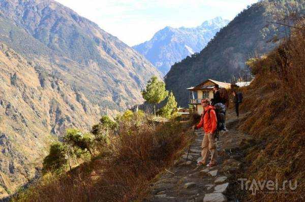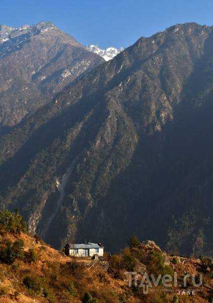 La casa resultó ser muy decente, hecha de piedra. Incluso la ducha y el inodoro —el baño tiene agua corriente fría (el agua caliente viene en un cubo aparte)—, algo poco común por allí. Claro que hace frío para lavarse: el suelo es de cemento, no hay calefacción y las corrientes de aire se filtran por todas partes. Sin embargo, en general, las condiciones son muy cómodas para una caminata así.