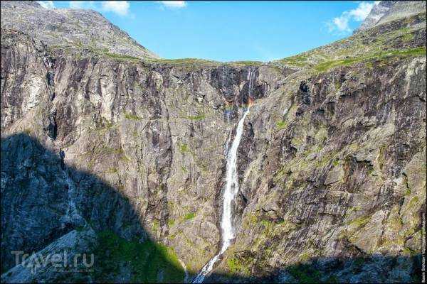 Так выглядит водопад Stigfossen снизу. Удивление и шок — эмоции, которые вызывает смотровая площадка на серпантине у водопада. Да, надо как-то перестраивать свой мозг. Европейцы очень умные люди: понимая, что все равно будут останавливаться посмотреть на это чудо природы, не поскупились и сделали небольшое расширение дороги, тем самым дав возможность безопасно остановить авто и насладиться чудесным водопадом.