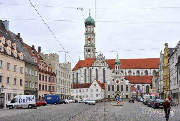 Самый красивый собор Аугсбурга — это пожалуй базилика Святых Ульриха и Афры. К ней выводит широкая Максимилианштрассе, в торце которой видны соседствующие друг с другом церкви: большая католическая базилика и маленькая протестантская церковь Св.Ульриха
