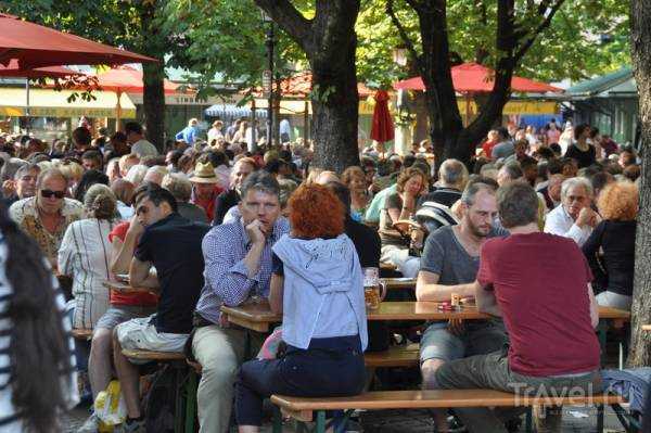 На Виктуалиенмаркт сразу понимаешь как баварцы любят пить пиво. Вот так, стройными и тесными рядами