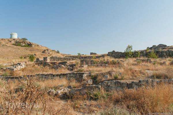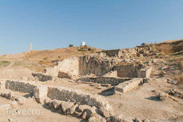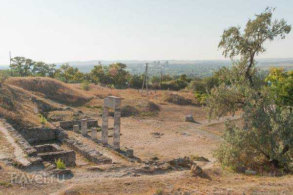 Следующий памятник древности, который мне удалось посетить, стало древнее городище Нимфей. О нём я узнал по приезду в город из справочника и википедии и решил съездить посмотреть. Артефактов древности на его месте куда меньше, чем в Пантикапее, но всё равно было интересно взглянуть. На месте застал ребят, занимающихся архиологическими раскопками.