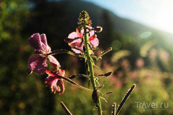 Цветы и встреча рассвета в лесу близ п. Терскол