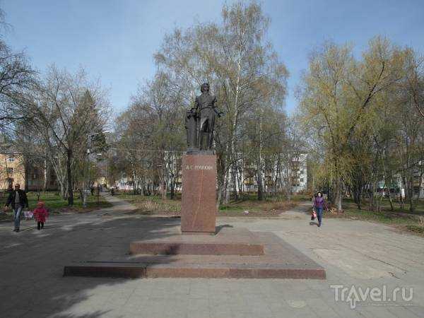 Довольно забавен тот факт, что памятник Пушкину и Онегину расположен в месте, где улица Пушкина упирается в реку и заканчивается. Противоположный же конец улицы, где она берёт своё начало, ограничен сквером, где также установлен памятник Пушкину, только советский, 80-х годов: