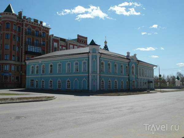 На фото — бывшая женская монастырская школа конца XIX-го века, принадлежавшая Богородице-Сергиевскому монастырю. Считается первым благотворительным учебным заведением для марийских девушек. С упразднением монастыря школа прекратила свою деятельность. При Советах здесь размещались в разное время техникум, музыкальная школа, художественное училище. Сегодня — Православный центр.