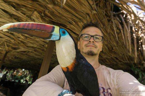 Перегружаемся из самолета в грузовичок, который, весело подпрыгивая на ухабах, везет нас в лодж на берегу лагуны. У входа нас встречают диковинные попугаи и общительный ручной тукан, в знак дружбы пытающийся оторвать своим клювом парочку пальцев от моей ноги. Завтра отсюда мы планируем отправиться к водопаду Анхель на вертолете, а пока немного отдохнем с дороги.