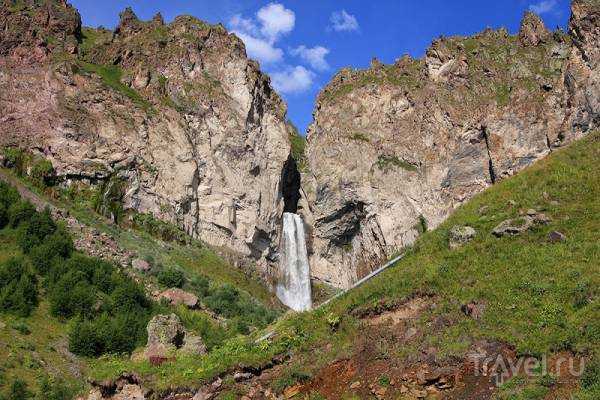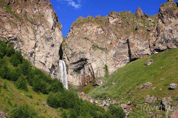 На против водопада Султан находится теплый нарзан, положительно влияющий на желудочно-кишечный тракт.