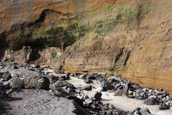 У самой воды отвесные скалы напоминают слоеный пирог.