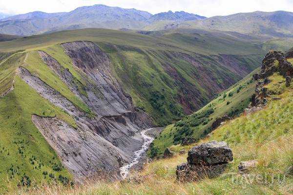 Ущелье реки Малка. На левом склоне видны следы сошедшего селя.